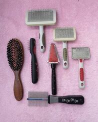 En karda och kam är bra att ha samt en sax att klippa bort eventuella tovor med.