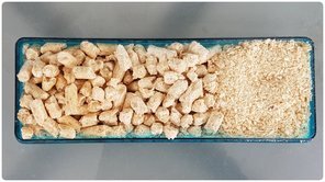 Spånpellets - Vanlig spånpellets, något uppblöt, färdig uppblöt spånpellets
